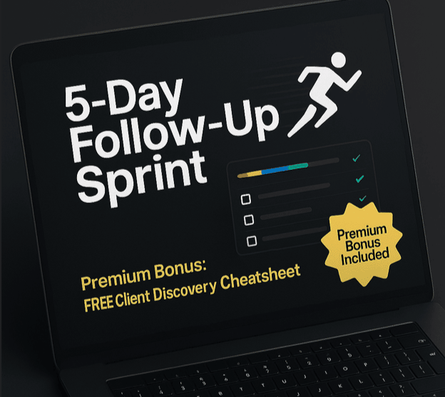 "Get the 5-Day Follow-Up Sprint — the free action plan that helps you send 15–25 targeted follow-ups and finally create predictable client flow."